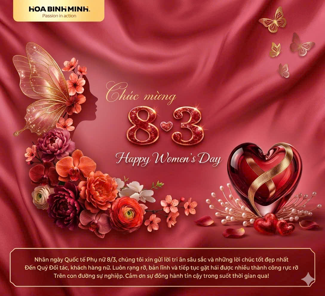 ✨ Nhân dịp ngày 8/3, Công ty CP Vật liệu Hòa Bình Minh trân trọng gửi tới Quý Khách hàng, Quý Đối tác và toàn thể CBNV nữ lời chúc sức khỏe, hạnh phúc và thành công.