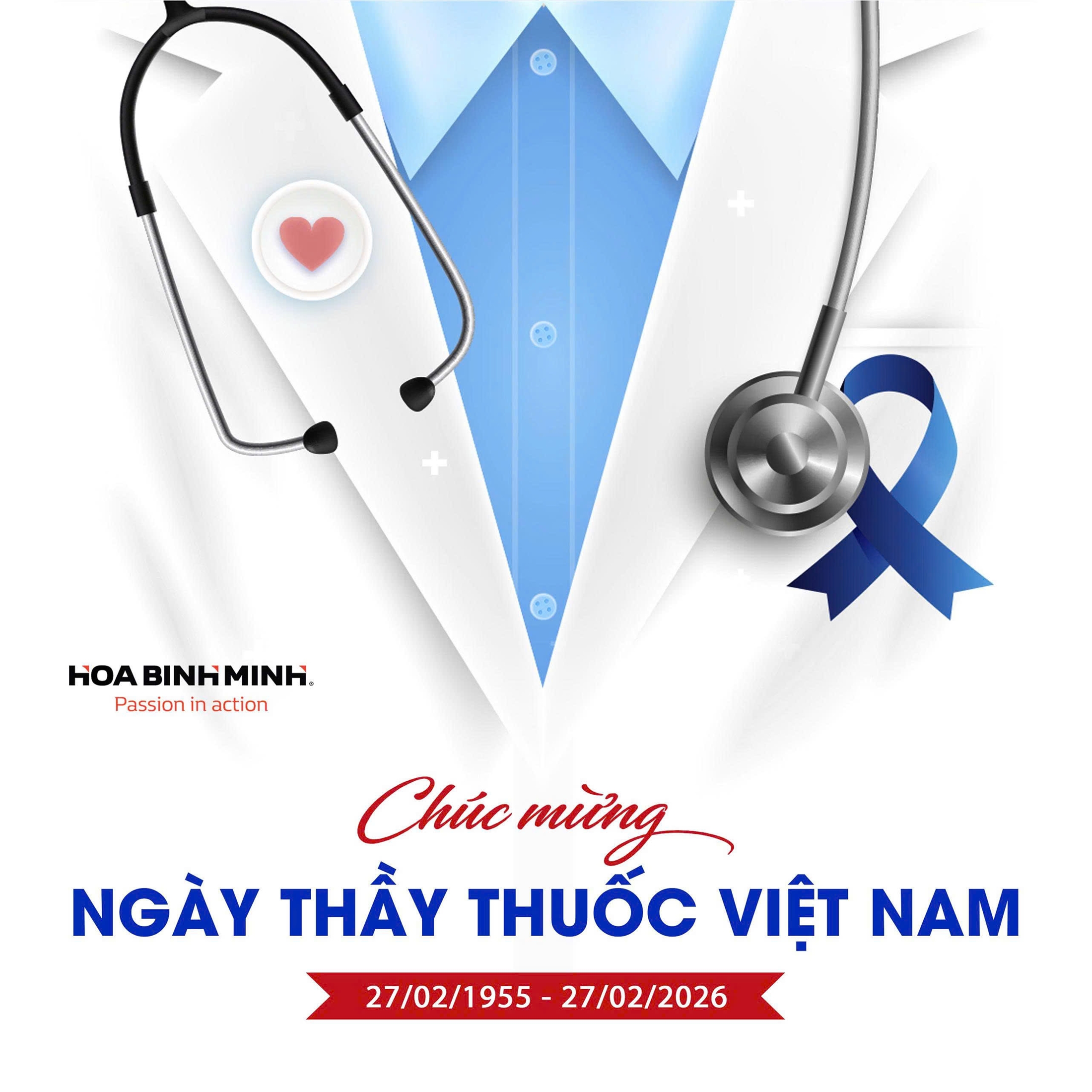 Nhân Ngày Thầy thuốc Việt Nam 27/2, Công ty VLXD Hòa Bình Minh xin trân trọng gửi lời chúc sức khỏe, hạnh phúc và lời tri ân sâu sắc tới đội ngũ y, bác sĩ, cán bộ ngành y tế.