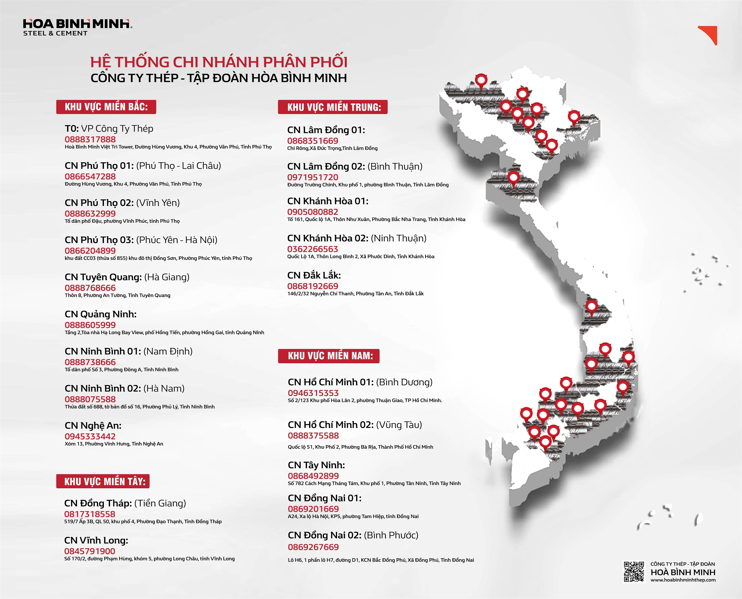 Với chuỗi hệ thống 20 Chi nhánh, kho hàng, nền tảng cơ sở vật chất, đội ngũ nhân viên và đặc biệt là mối quan hệ hợp tác cùng phát triển bền vững của hơn 3.000+ đối tác khách hàng. Công ty Thép đã nhận được sự tin tưởng ủng hộ của các nhà máy, các đại lý khách hàng… trong cả nước, góp phần xây dựng uy tín thương hiệu nhà phân phối VLXD hàng đầu Việt Nam.