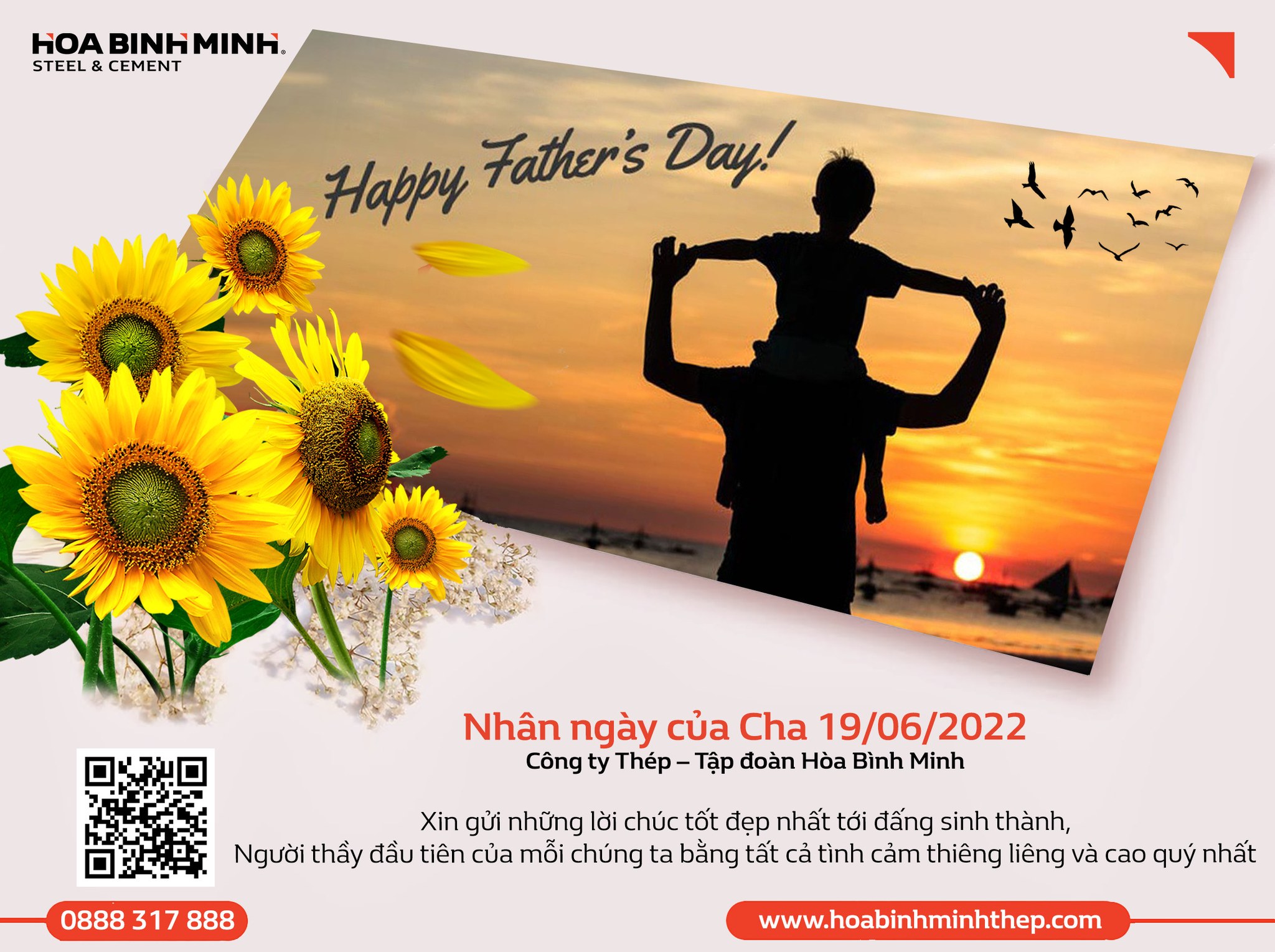 Nhân ngày của Cha 19/06/202, Công ty Thép – Tập đoàn Hòa Bình Minh xin gửi đến Quý Khách hàng/ Quý Đối tác cùng toàn thể CBCNV lời chúc sức khỏe, tràn ngập niềm vui và những phút giây hạnh phúc bên Cha Mẹ